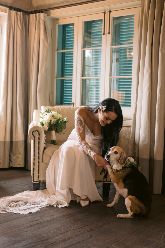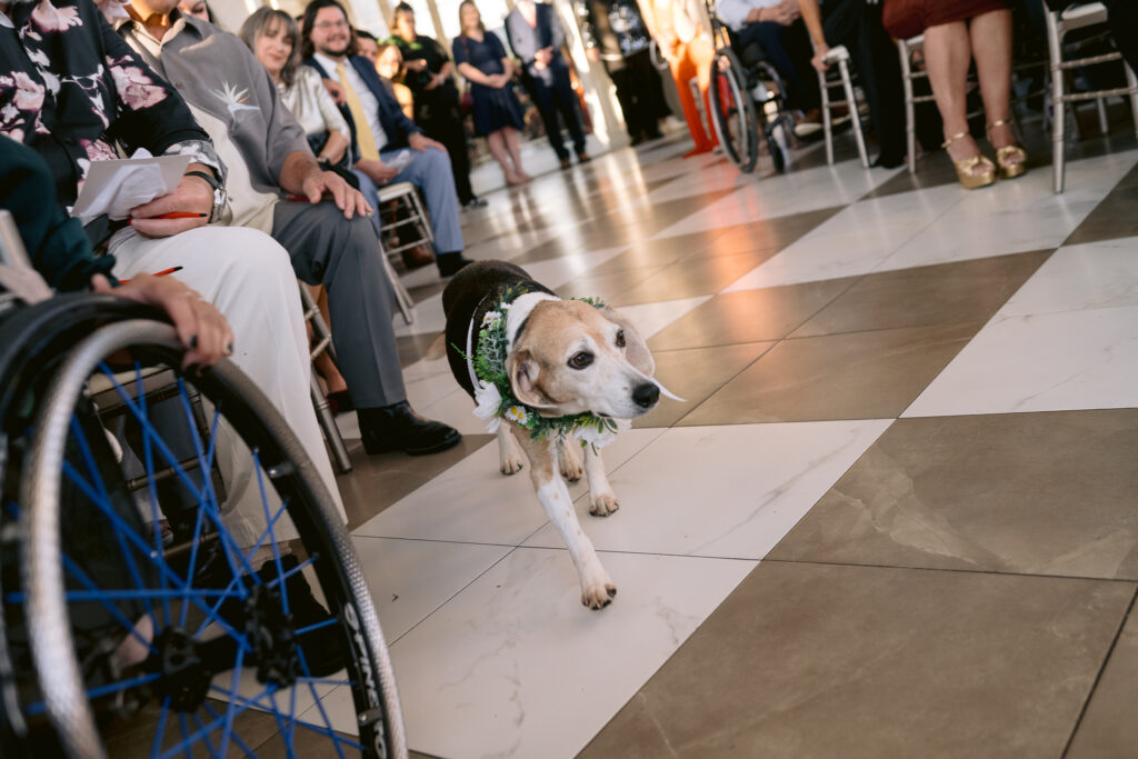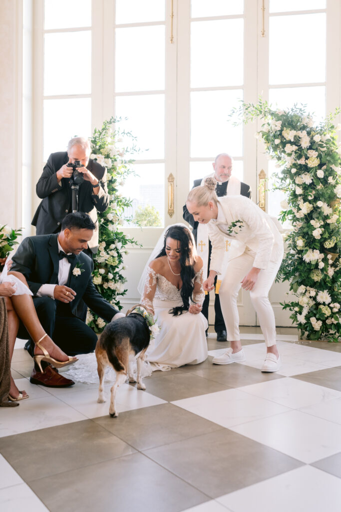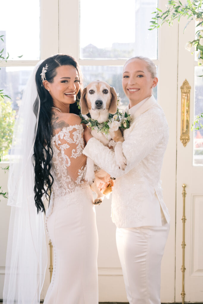 Amanda and Victoria personalized their wedding by featuring their beloved dog, Gia, who lit up the ceremony with her spirit and excitement. She made a heartwarming cameo during the ceremony, gleefully bouncing down the aisle, evoking laughter and happy tears from all in attendance.