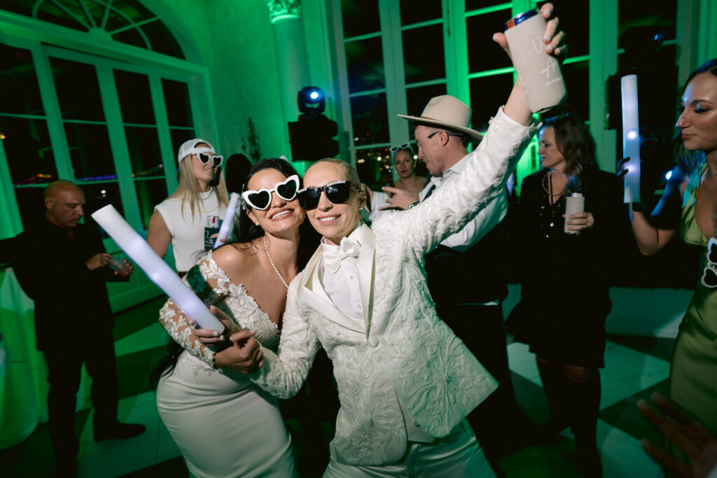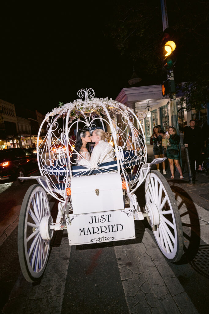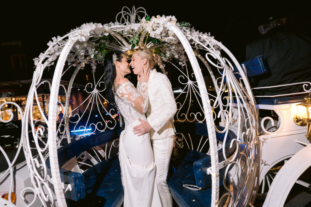 The brides ended the night in classic, storybook fashion by taking a romantic horse and buggy ride through the city.