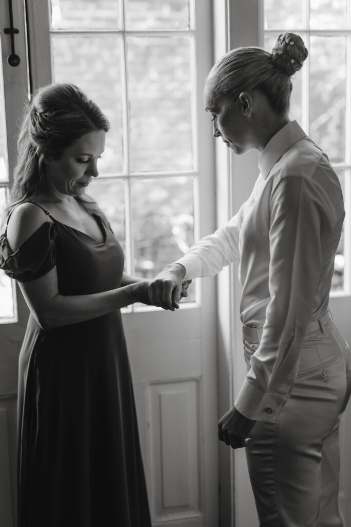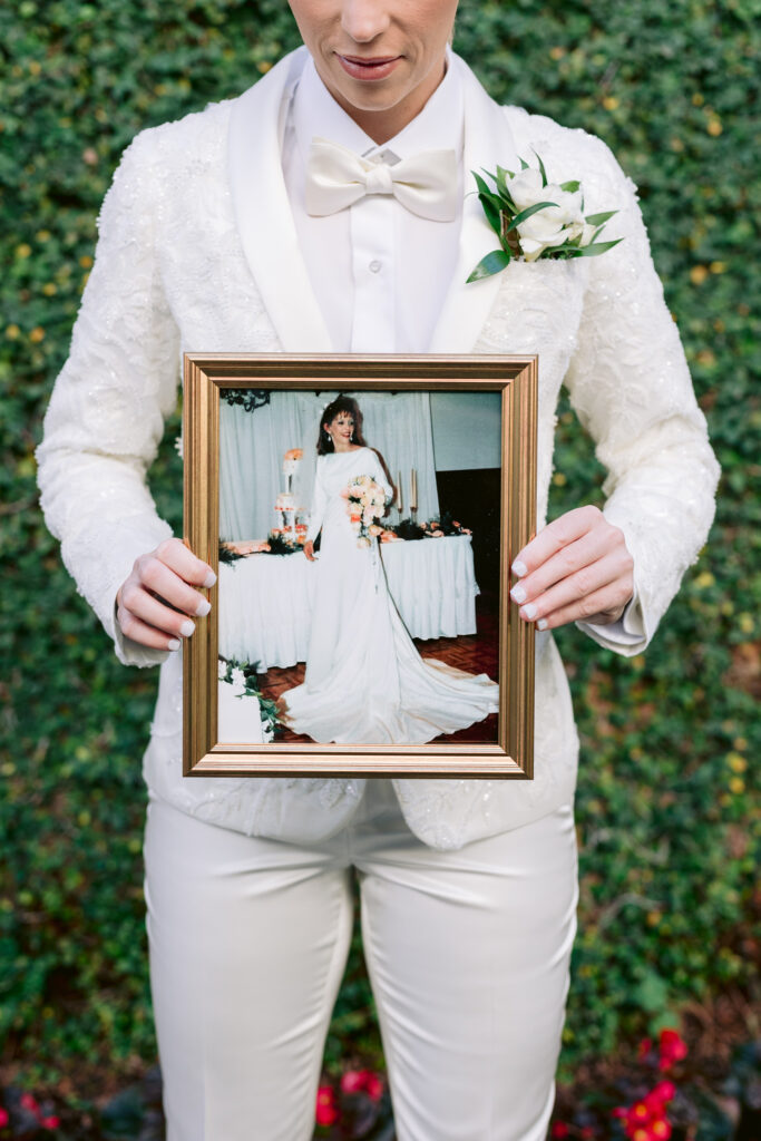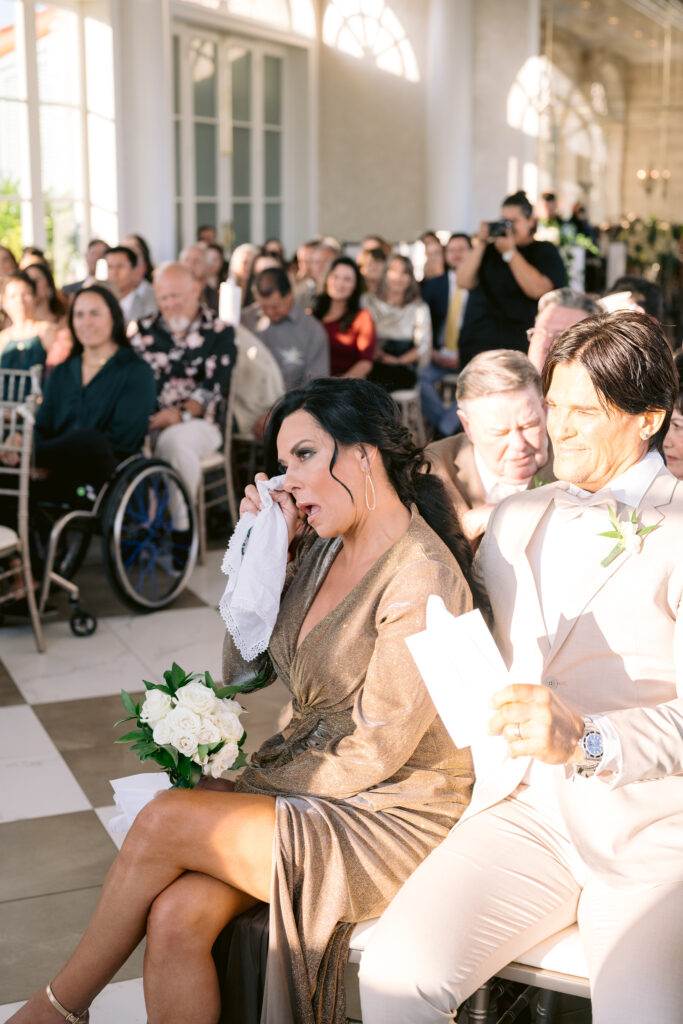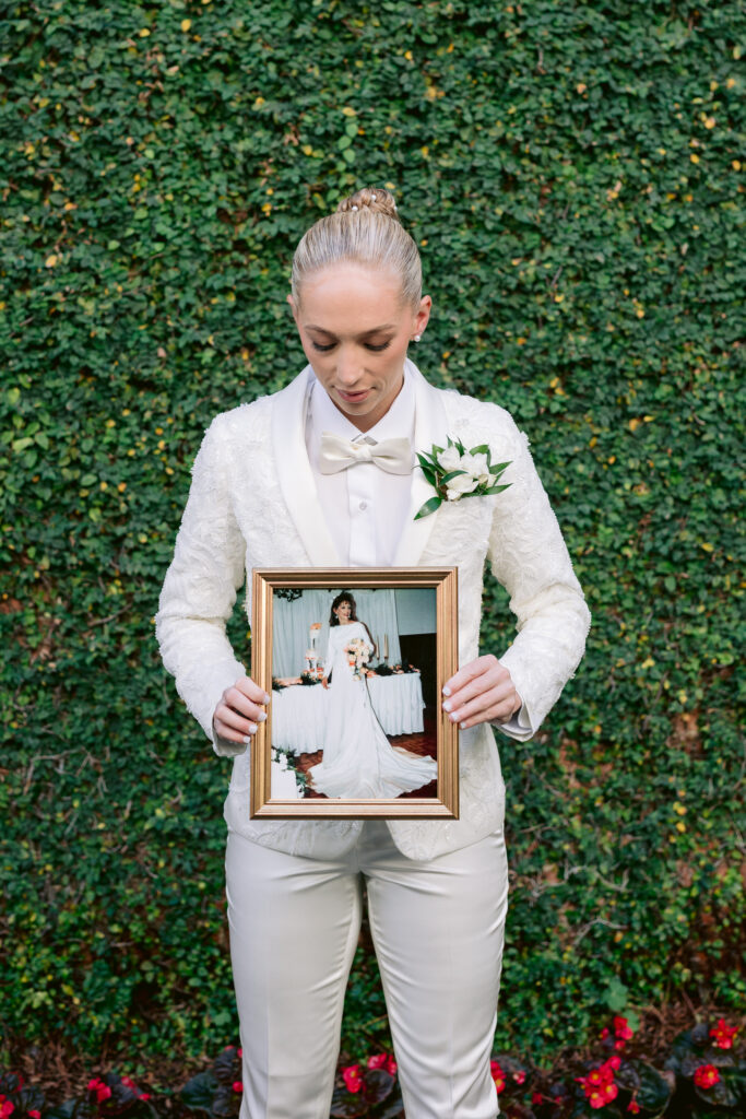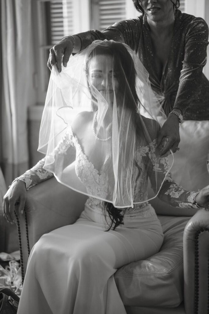 For Amanda, honoring her mom in a beautiful, heartfelt way was central to the day. A framed photo of her mom was included as she got ready, we made sure to take a quiet moment to capture that memory. At the ceremony, an empty chair in the front row was adorned with her mom’s photo, flowers, wedding ring, rosary, and ashes as a loving tribute.